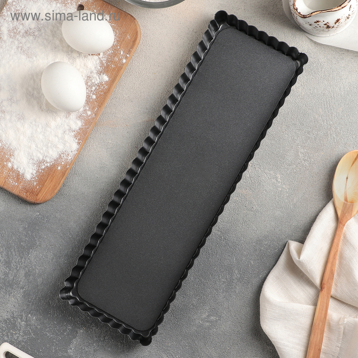 Форма для выпечки «Жаклин. Прямоугольник рифлёный», 35×11×2,5 см, съёмное дно, антипригарное покрытие, цвет чёрный