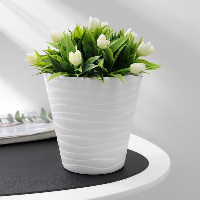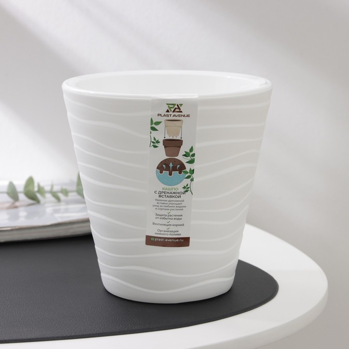 Кашпо для цветов со вставкой «Валенсия», 2 л, цвет белый