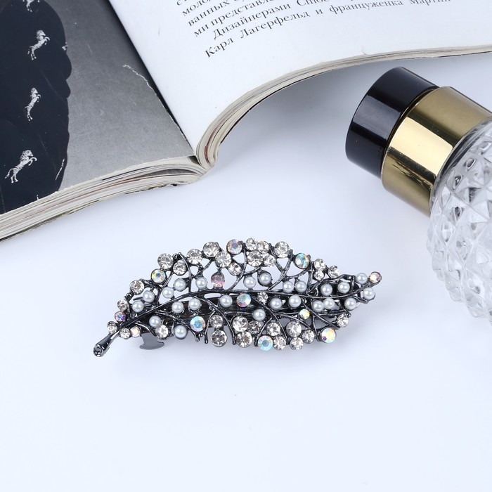 Заколка-автомат для волос "Листопад" жемчуг, 7 см