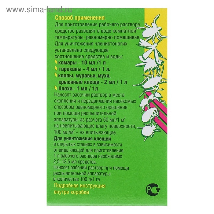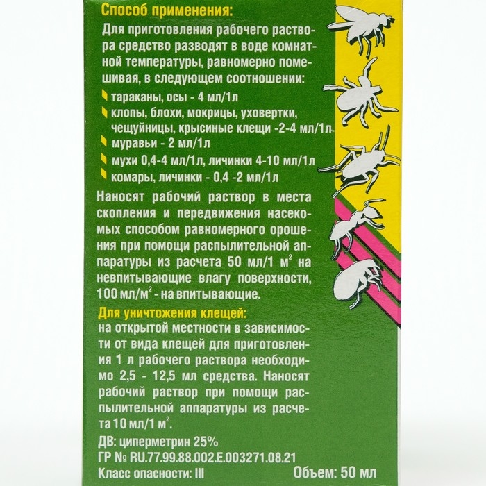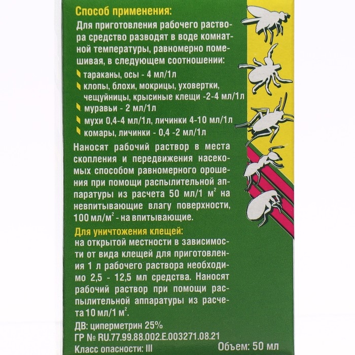Средство от тараканов, муравьев, блох, комаров, мух и клещей "Циперметрин" 50 мл.