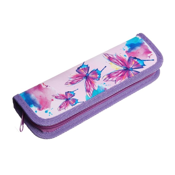 Пенал 1 секция, 55 х 205 х 25 мм, Calligrata "Бабочки", ламинированный картон
