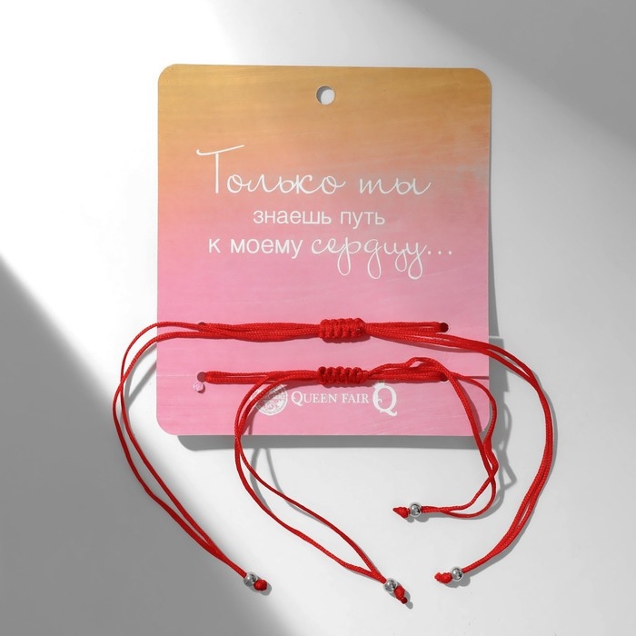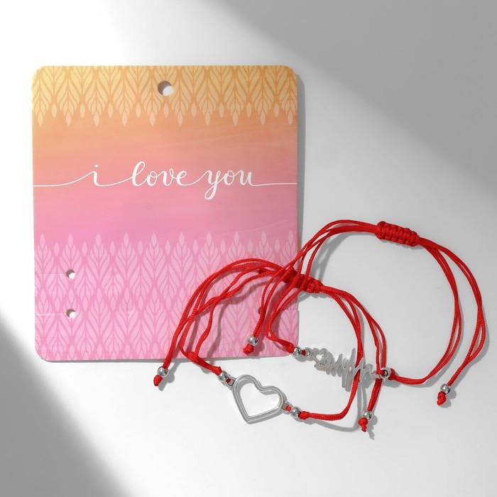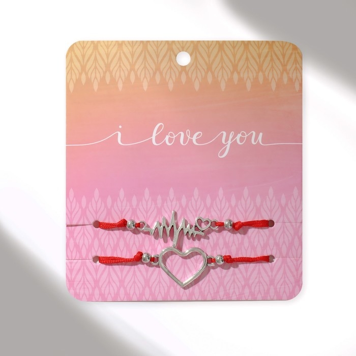 Браслет-оберег «Красная нить» In love биение сердца, набор 2 шт, цвет серебро, d=5,5см