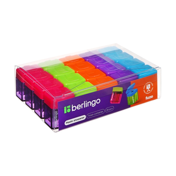 Точилка 1 отверстие с контейнером Berlingo "Fuze", пластик, микс