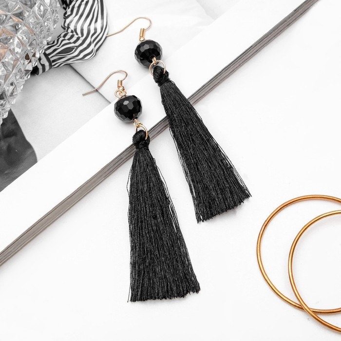 Серьги ассорти «Кисти» диско, цвет чёрный в золоте, L кисти 7 см 39198