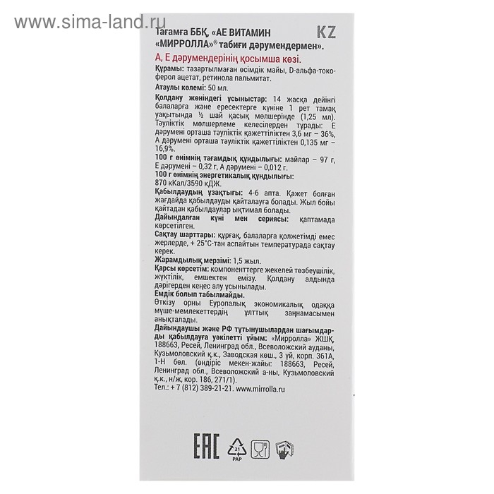 Пищевая добавка Mirrolla «АЕ ВИТамин» с природными витаминами, 50 мл