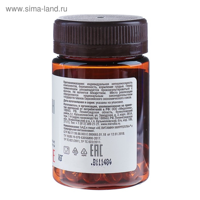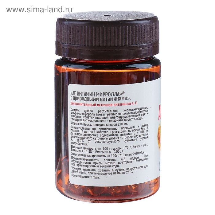 Пищевая добавка Mirrolla «АЕ ВИТамин» с природными витаминами, 30 капсул