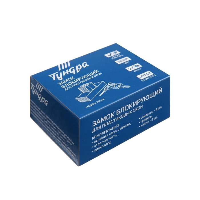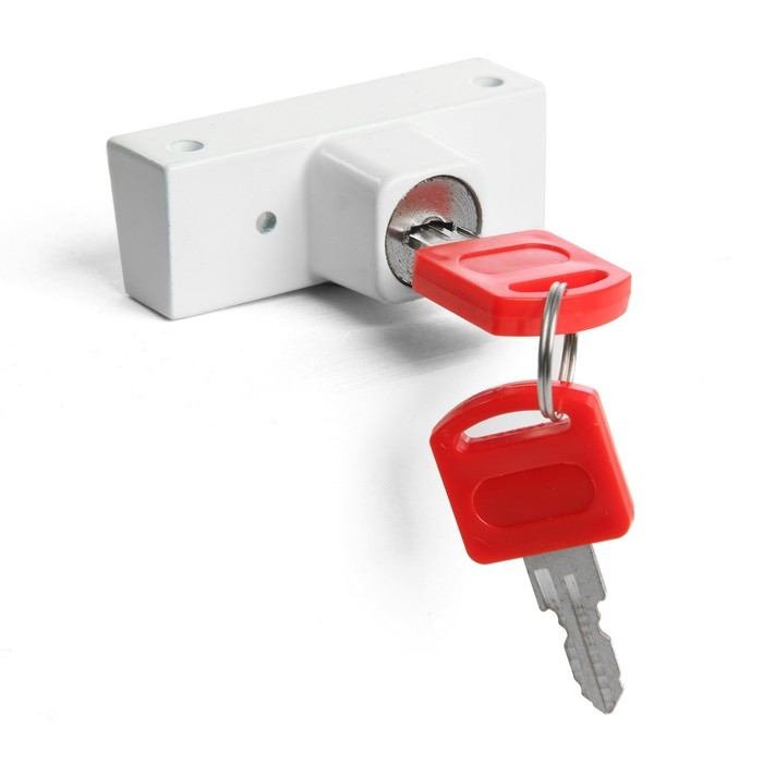 Замок накладной блокирующий для пластиковых окон ТУНДРА 001WW, 2 ключа, белый