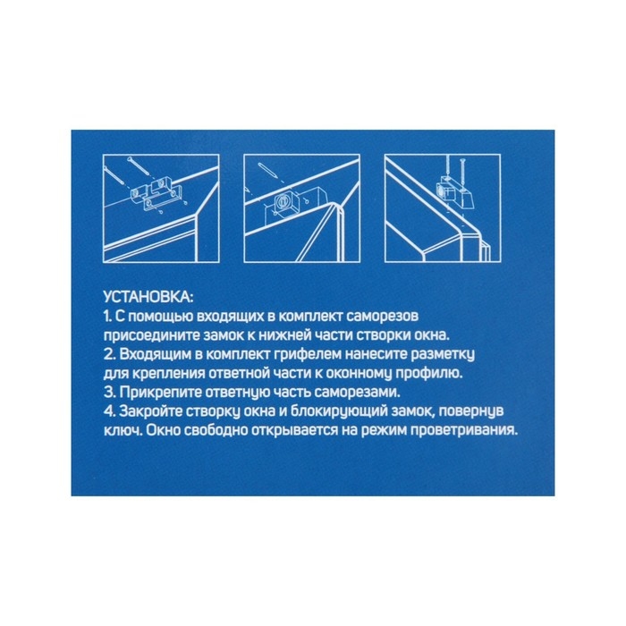 Замок легко монтируется. Подходит для любых пластиковых окон.