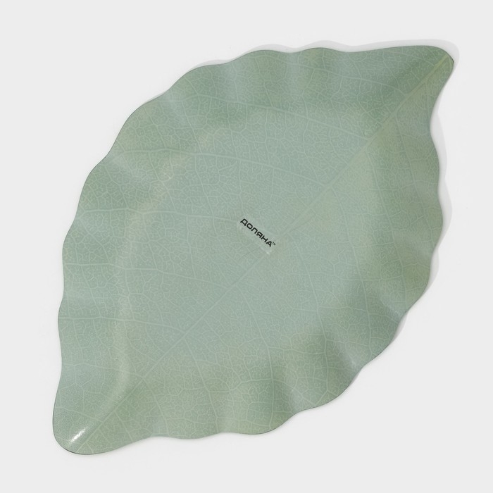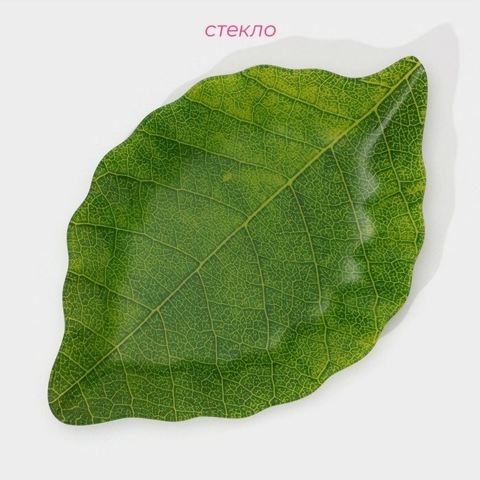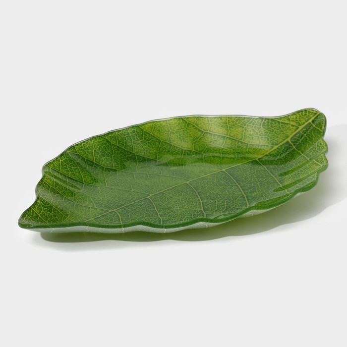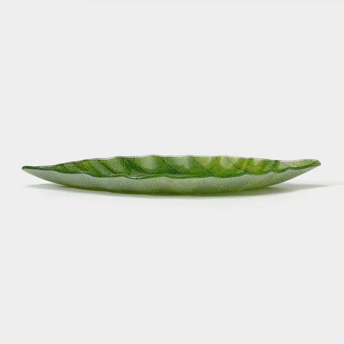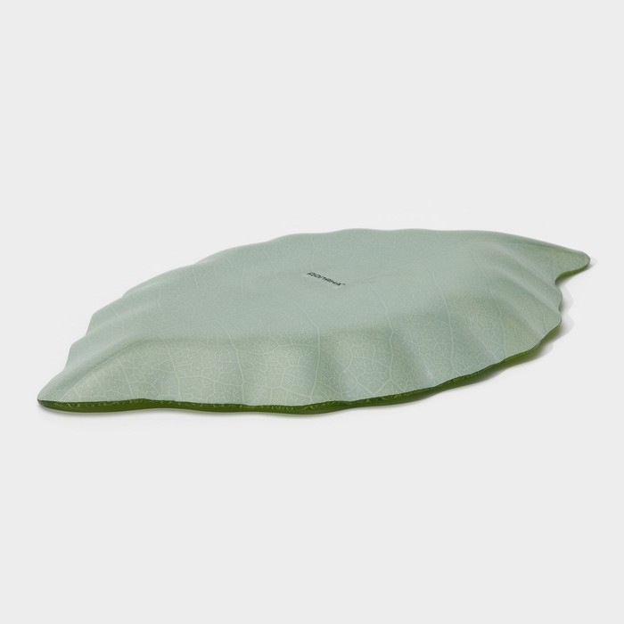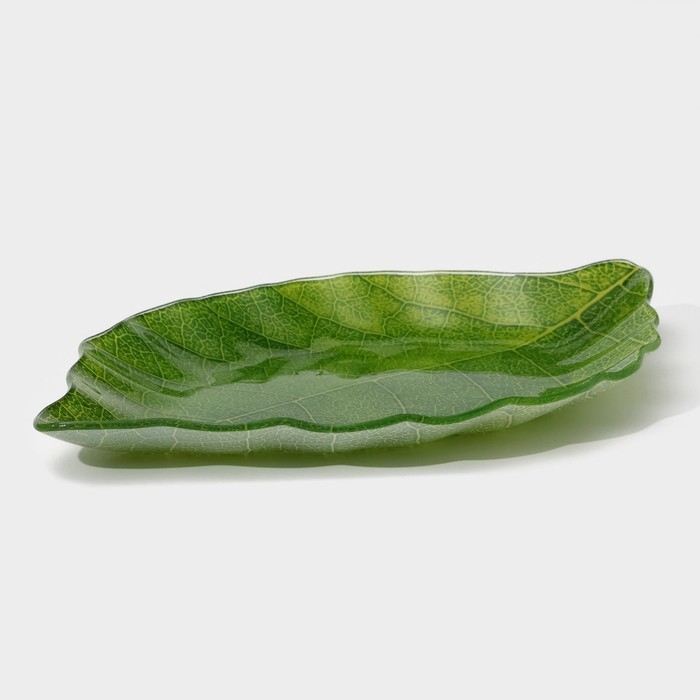 Блюдо сервировочное стеклянное Доляна «Лист», 31×19 см, цвет зелёный