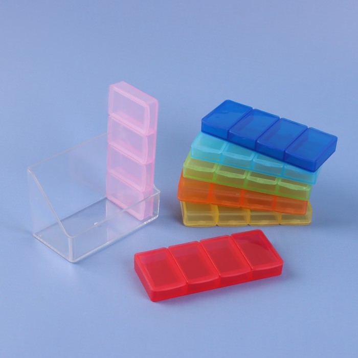 Таблетница - органайзер «Неделька», съёмные ячейки, утро/день/вечер/ночь, 17,5 × 10,7 × 2,5 см, 7 контейнеров по 4 секции, разноцветная
