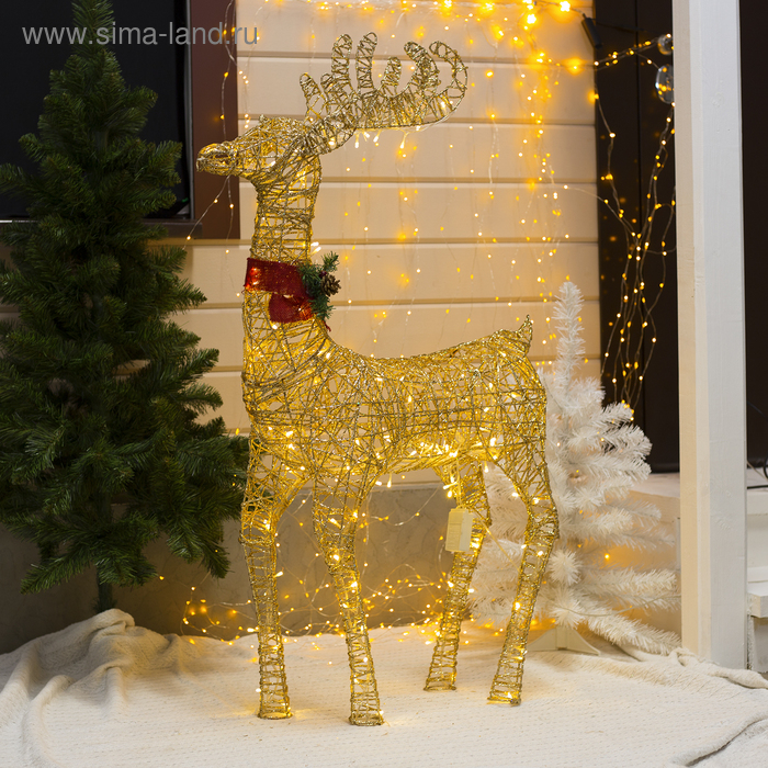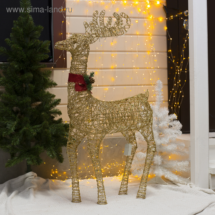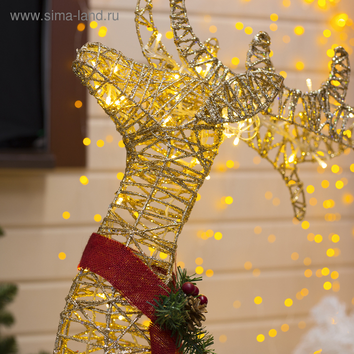Светодиодная фигура «Олень золотистый» 70 × 120 × 30 см, металл, 220 В, свечение тёплое белое