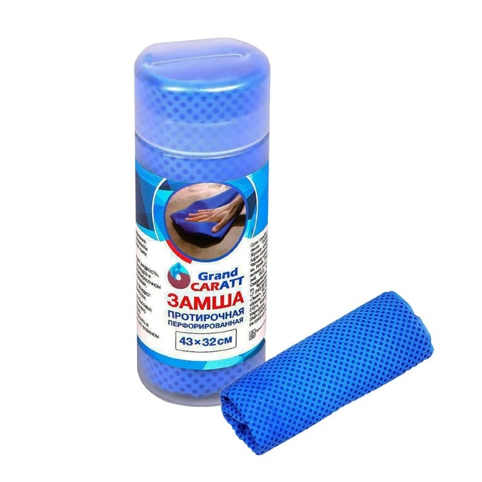 Замша протирочная Grand Caratt 43×32 см, перфорированная в тубе, синяя