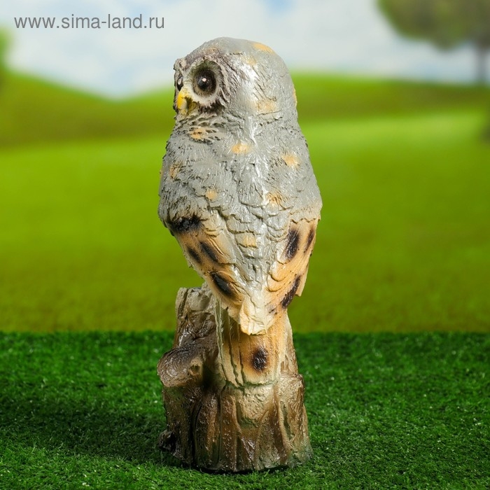 Садовая фигура "Сова на пне" серая, 28см