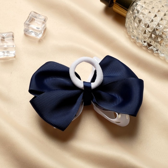 Резинка для волос "Школьница" бант горох серебро, 8 см, бело-синий