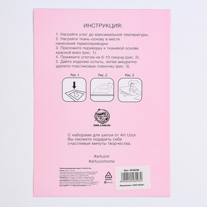 Термопереводки для кукол «Радость», 14.5 × 23.5 см