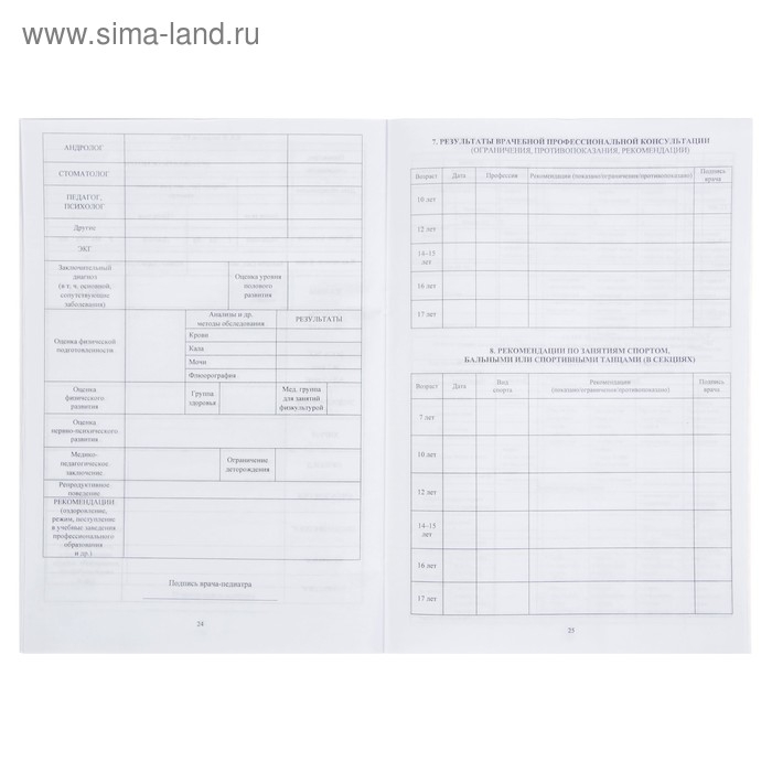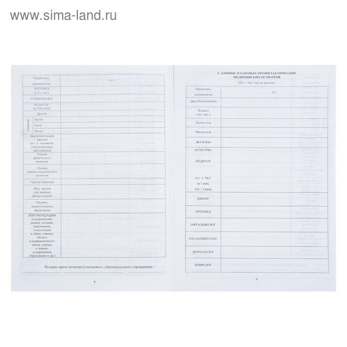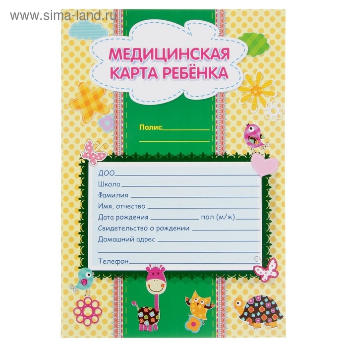 Медицинская карта ребёнка А4, 16 листов, обложка - мелованный картон 215 г/м², блок офсет 65 г/м². Форма № 026/у-2000