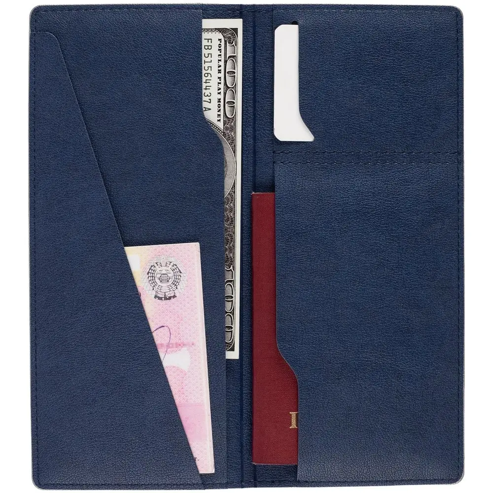 Имеет 5 отделений: для билетов, паспорта, визиток или кредитных карт.