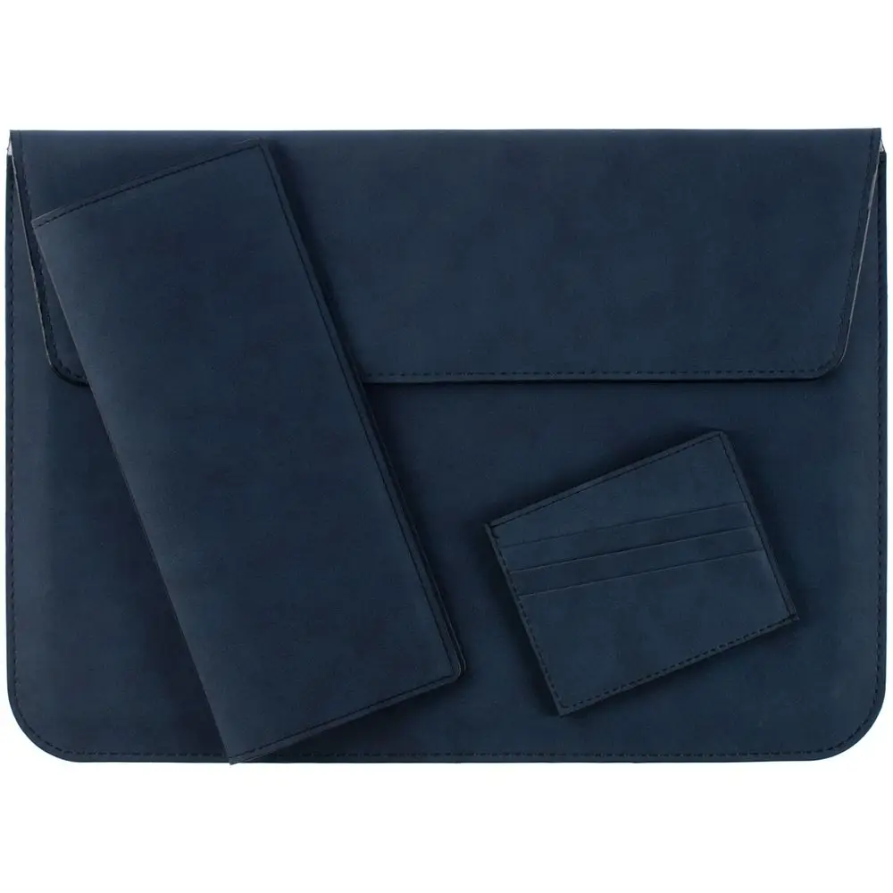 Чехол для ноутбука с диагональю до 13", выполнен из материала Nubuck, темно-синий ХХ, внутри серый велюр.