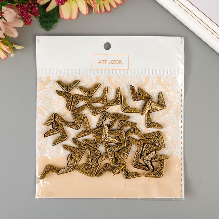 Защитный уголок для альбома металл "Завитки" набор 50 шт бронза 1,4х1,4 см