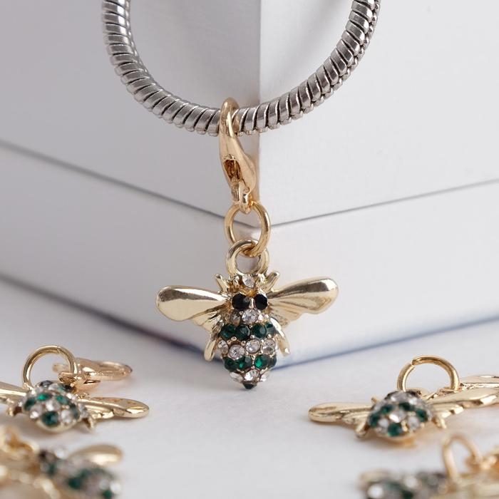 Шарм «Пчёлка» труженица, цвет бело-зелёный в золоте
