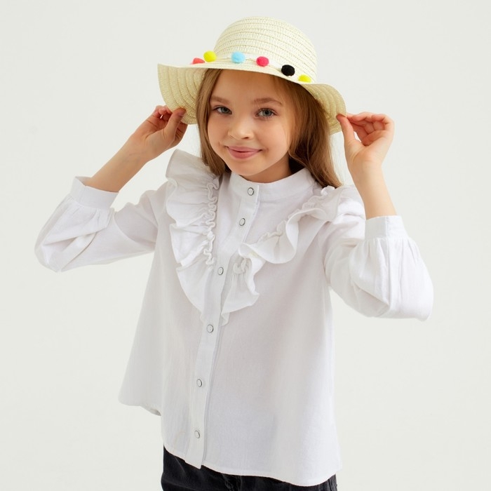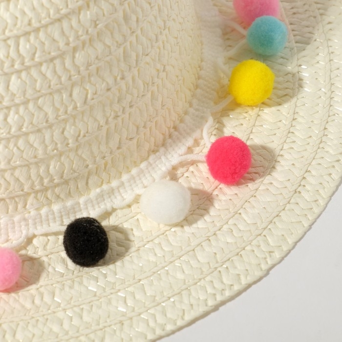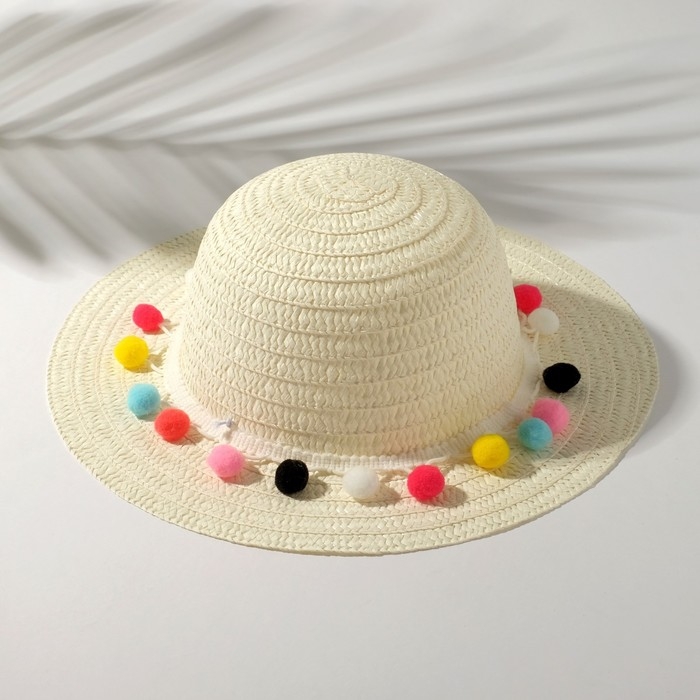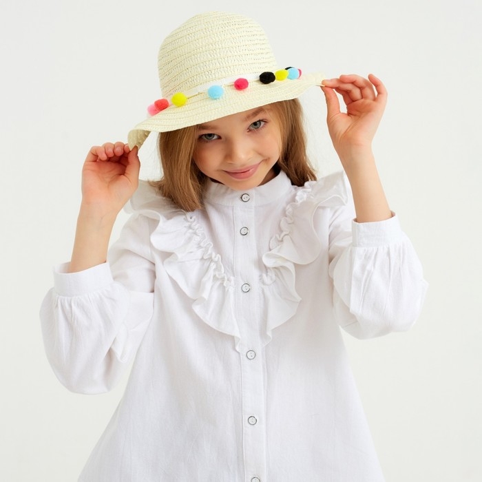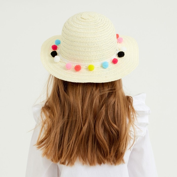 Шляпа с бомбошками для девочки MINAKU, размер 50, цвет белый