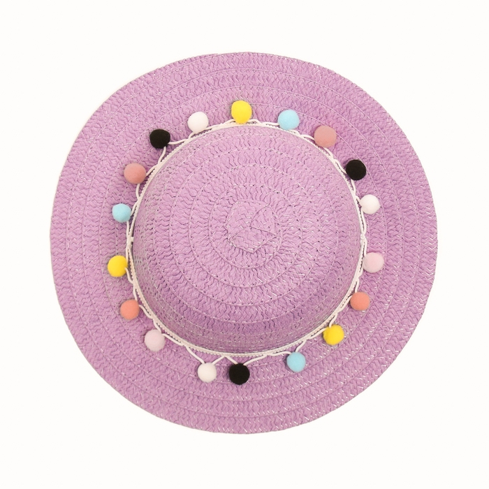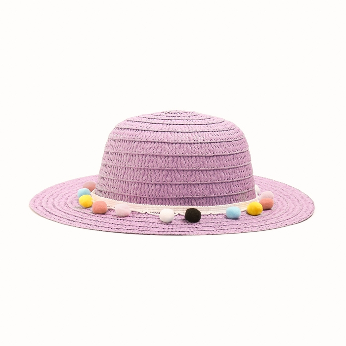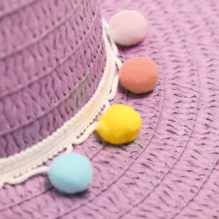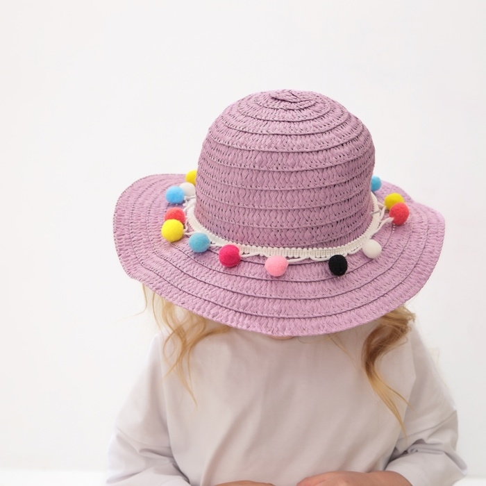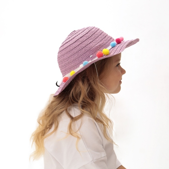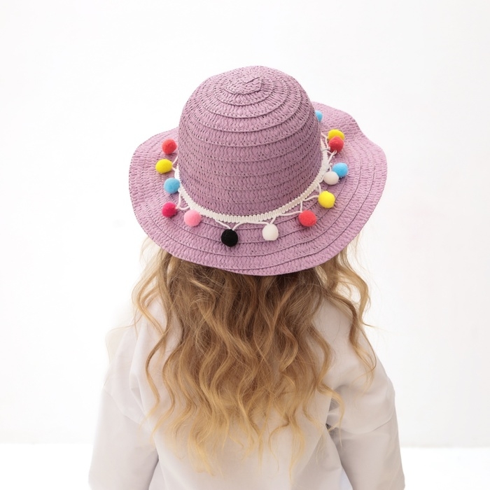 Шляпа с бомбошками для девочки MINAKU, цвет фиолетовый, размер 50