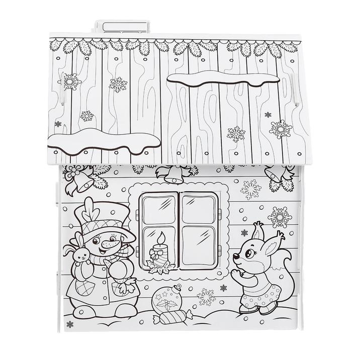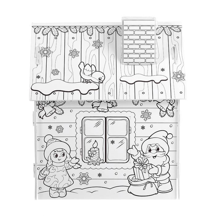 Домик-раскраска 3 в 1 «В гостях у Деда Мороза», 5 фломастеров, 6 деталей
