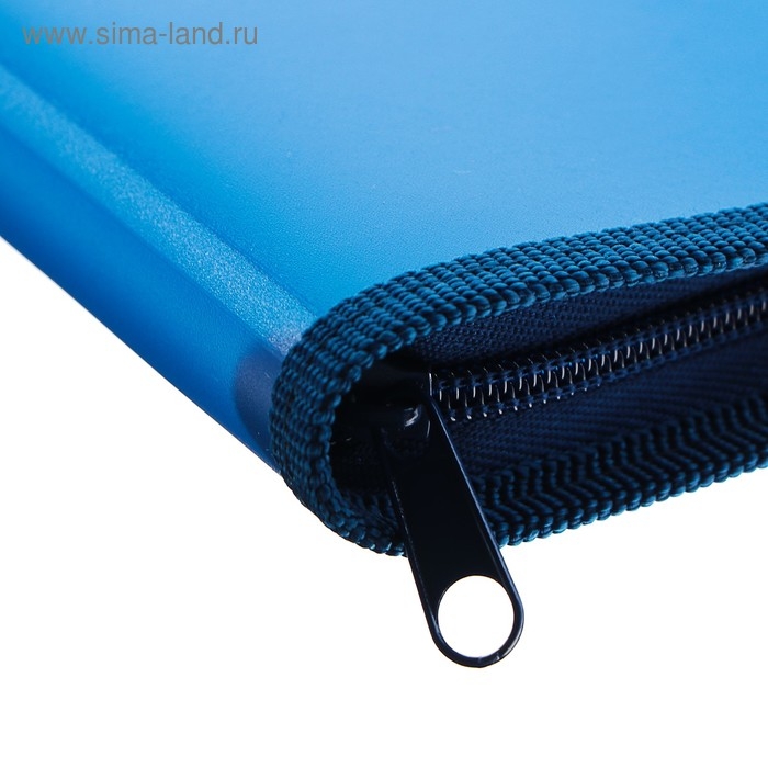 Папка с ручками А4, 230 х 185 х 25 мм, молния вокруг, пластиковая, ПТ-112, "Офис", тонированная, цвет тёмно-синий