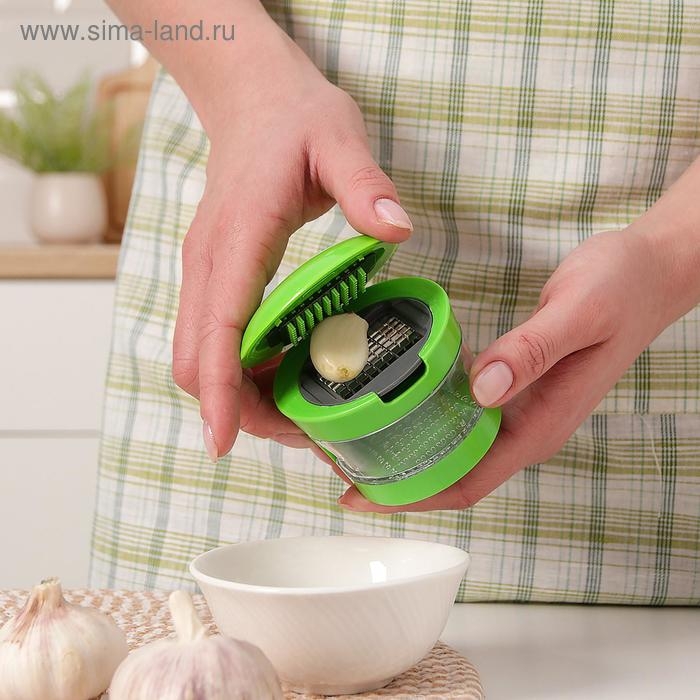 Приспособление для нарезки чеснока «Прино», 2 насадки, 7,5×7,5×6 см, цвет зелёный