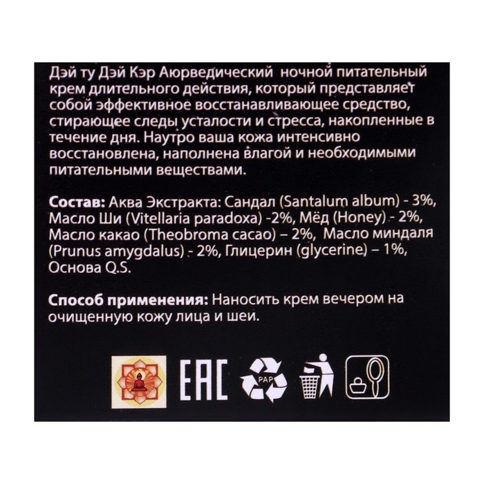 Крем для лица аюрведический Дэй ту Дэй Кэр ночной, питательный, 50 г