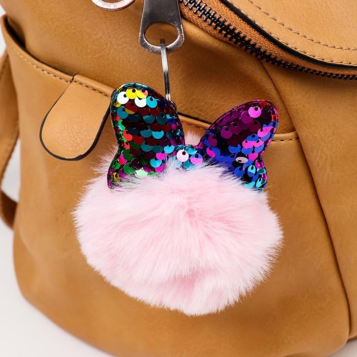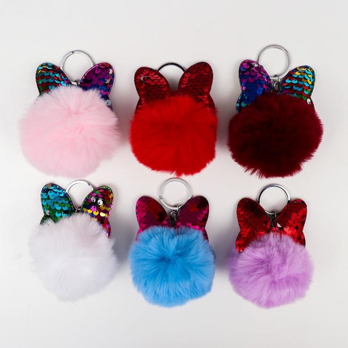 Пушистик на кольце "Шарик с бантиком" пайетки МИКС 10х7х7 см