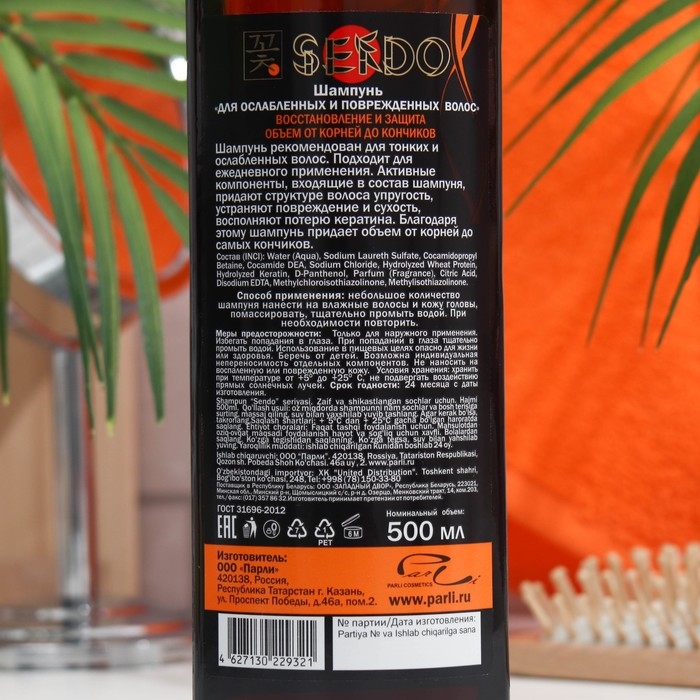 Шампунь для волос Sendo Professional с пантенолом для ослабленных и поврежденных волос, 500 мл