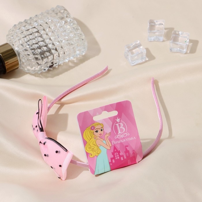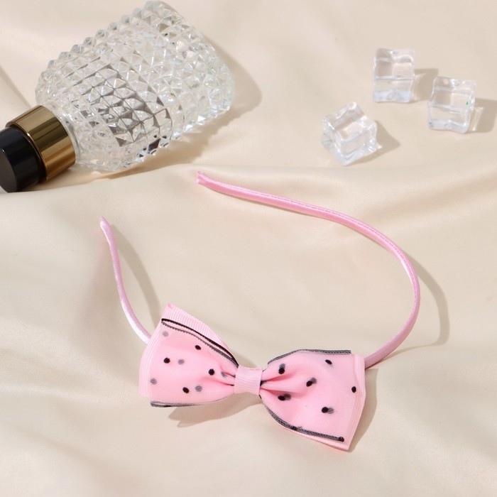 Ободок для волос "Бантик" чёрный горох, 0,5 см, розовый