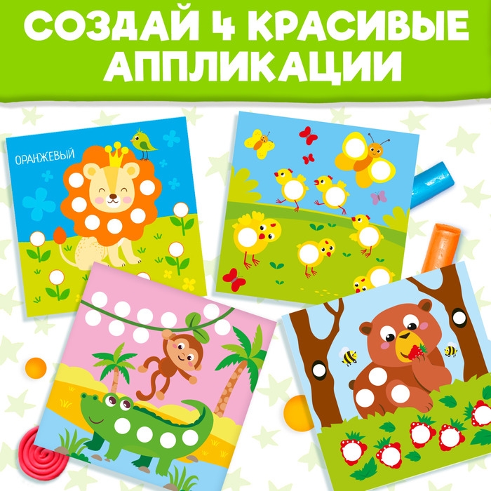 Книга для аппликации пластилином направлена на развитие моторики, внимательности и аккуратности у малышей.