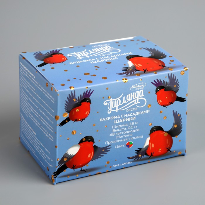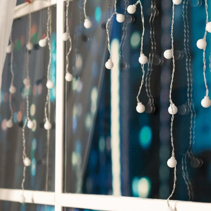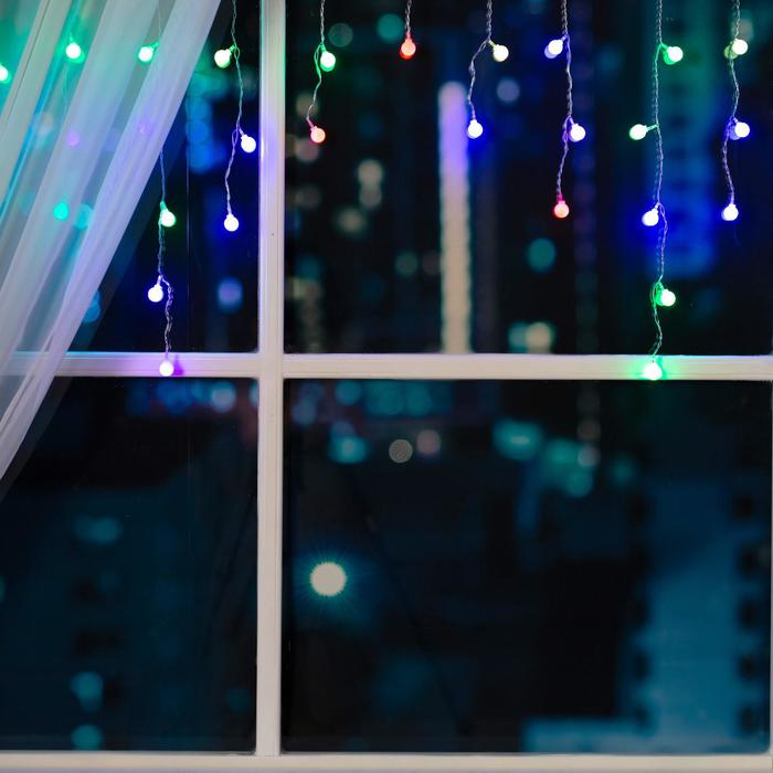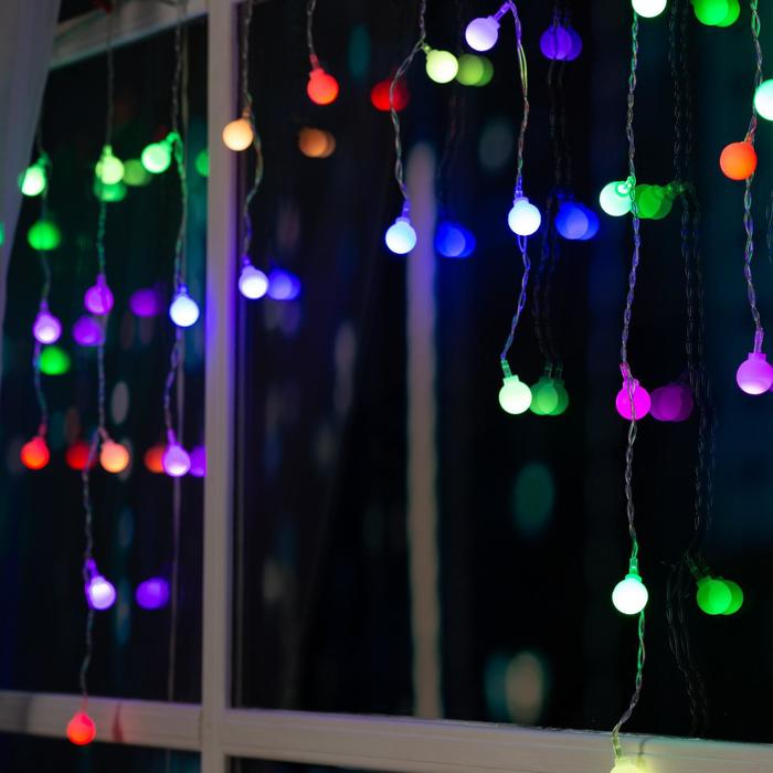 Гирлянда «Бахрома» 1.8 × 0.5 м с насадками «Шарики», IP20, прозрачная нить, 48 LED, свечение мульти (RG/RB), мигание, 220 В