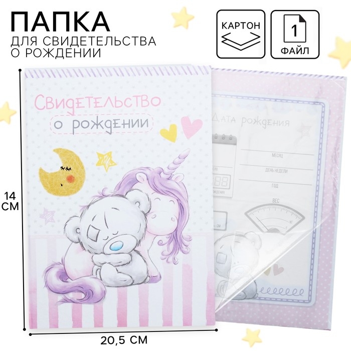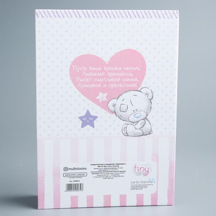 Свидетельство о рождении с файлом "Для девочки", новый формат свидетельства, Me To You, А5
