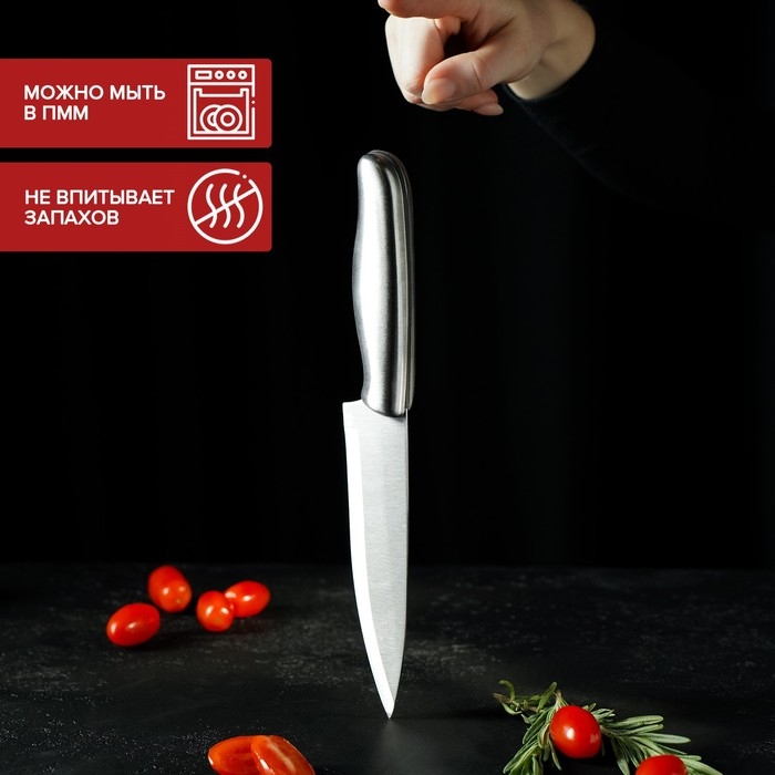 Нож кухонный «Металлик», лезвие 15 см, цвет серебристый