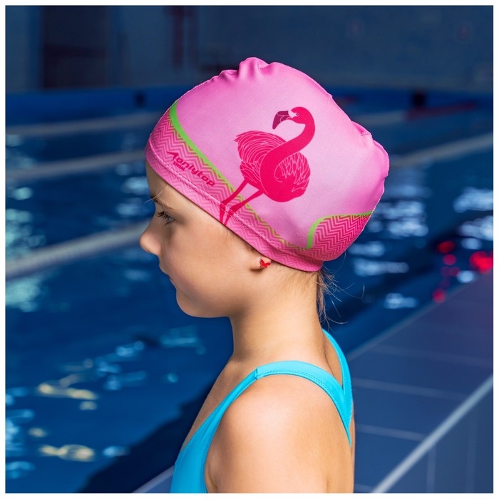 Шапочка для плавания детская ONLYTOP «Фламинго», тканевая, обхват 46-52 см
