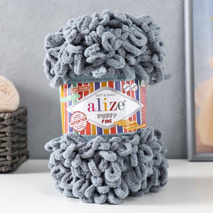 Пряжа "Puffy fine" 100% микрополиэстер 14,5м/100г (343 серый)