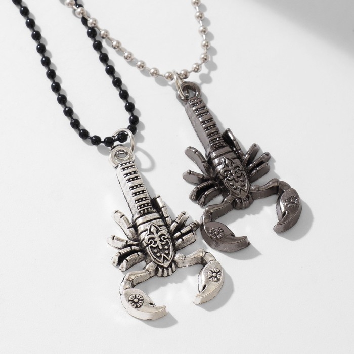 Кулоны «Неразлучники» скорпион, цвет серебро с чернёным серебром, 50 см