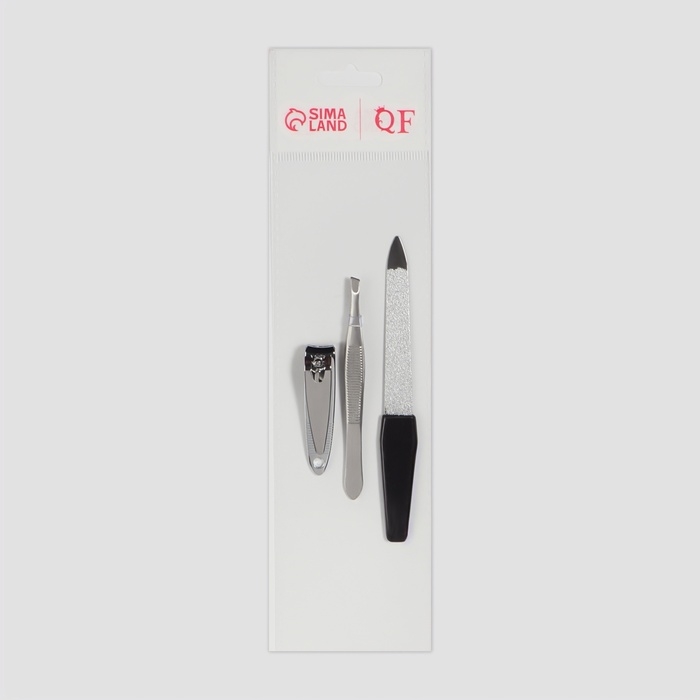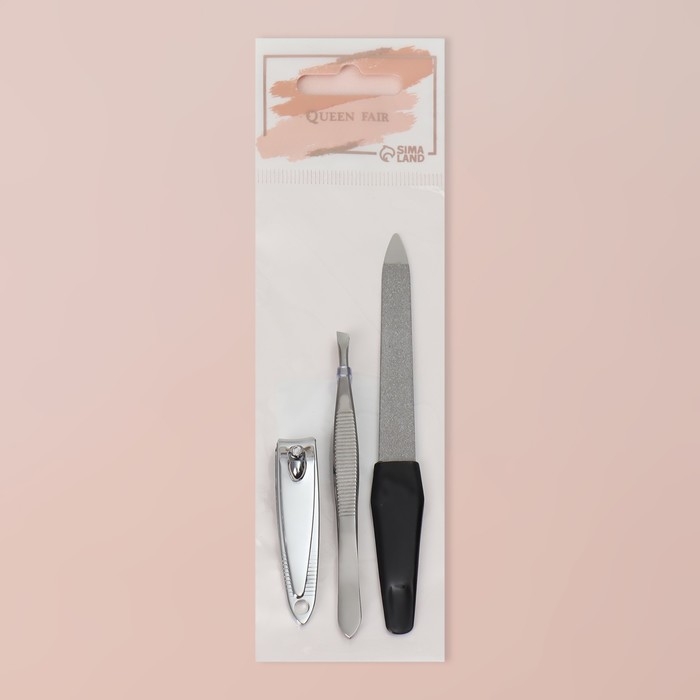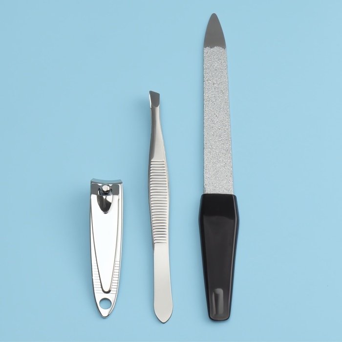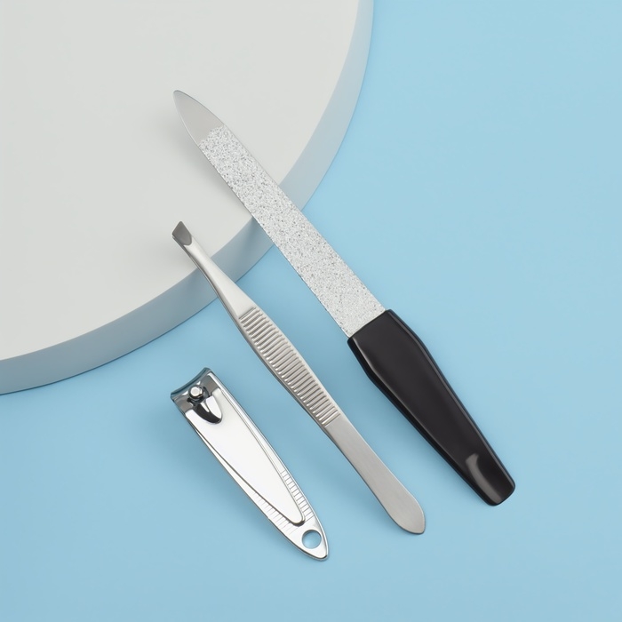 Набор маникюрный, 3 предмета, цвет чёрный/серебристый