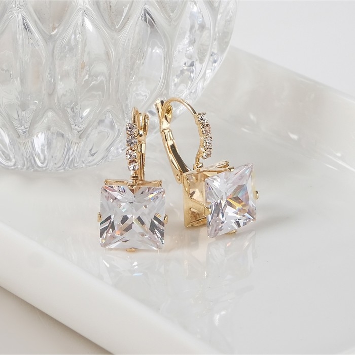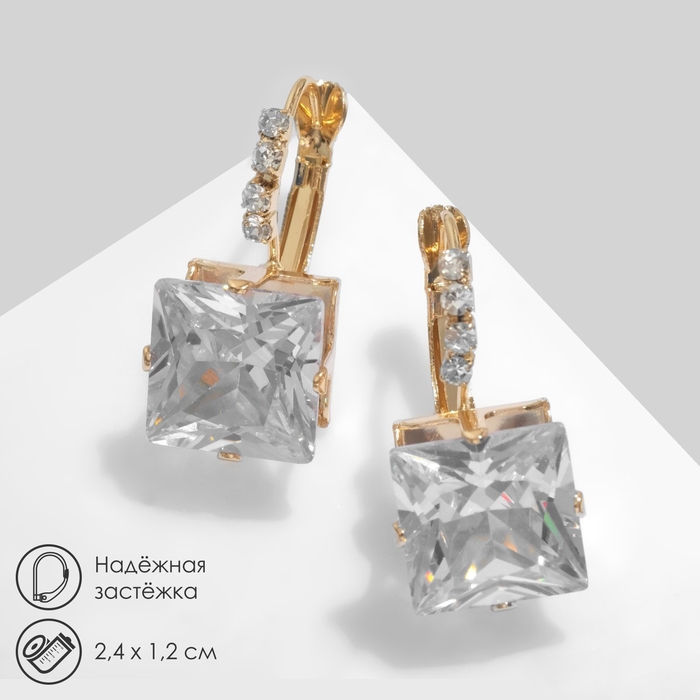 Серьги «Циркония» мини, квадрат, цвет белый в золоте