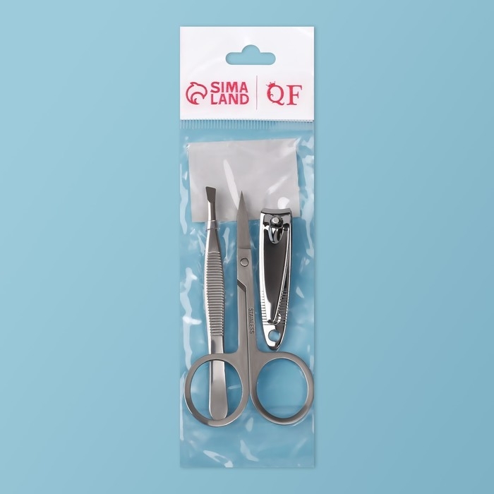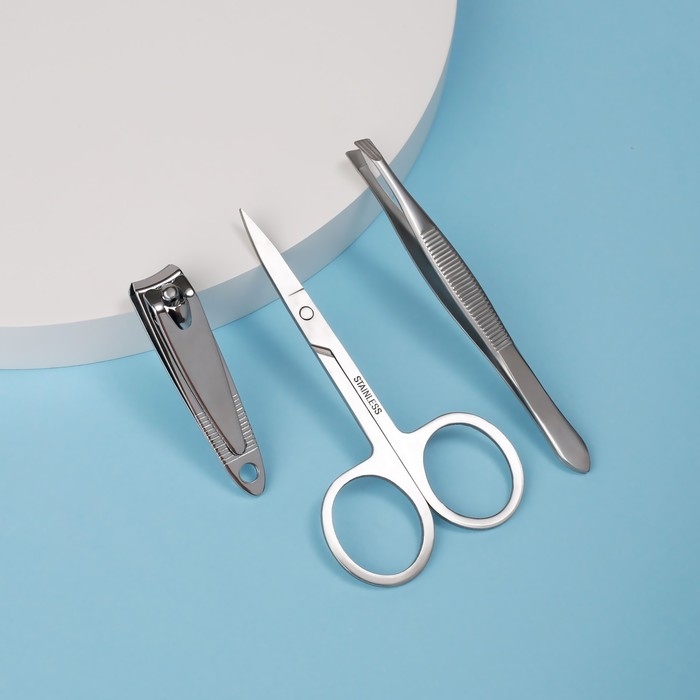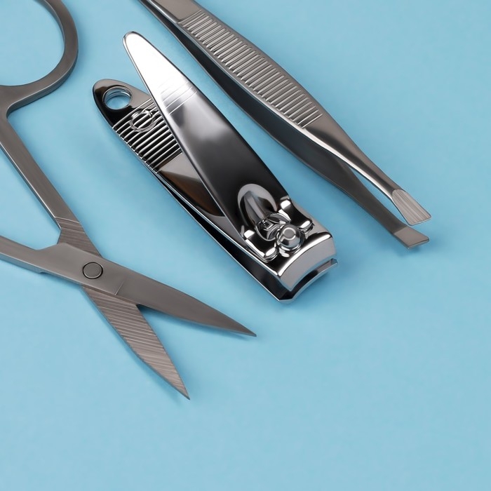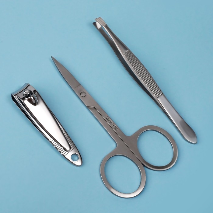 Набор маникюрный, 3 предмета, цвет серебристый