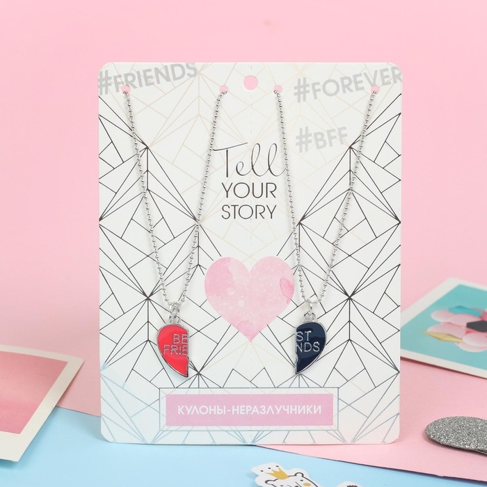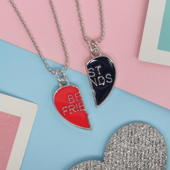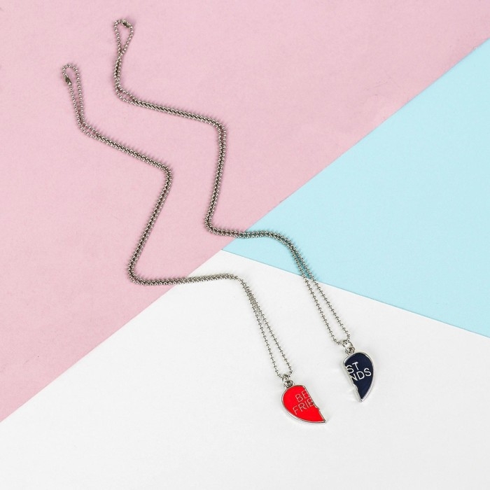Кулоны «Неразлучники» best friends, сердце, цвет красно-синий в серебре, 45 см