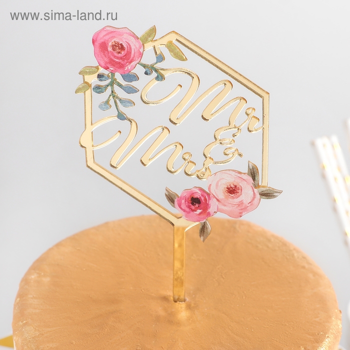 Топпер для торта «Молодожёны», 15×9,5 см, цвет золотой