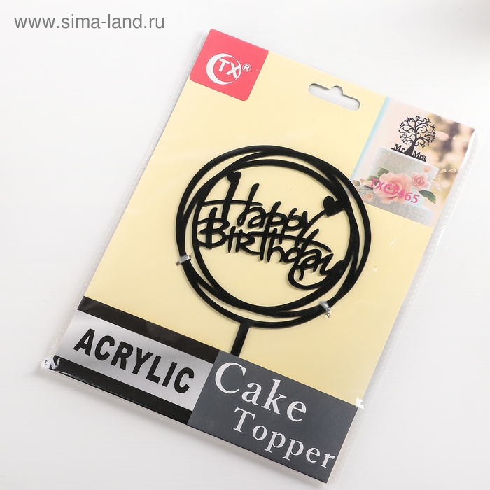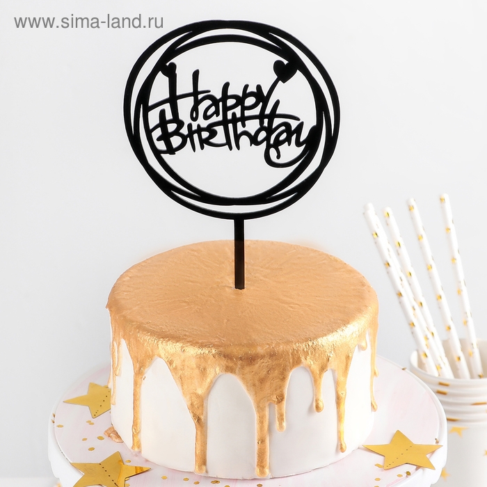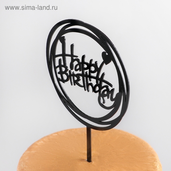 Топпер для торта «С Днём Рождения», 16,5×12,5×0,1 см, цвет чёрный