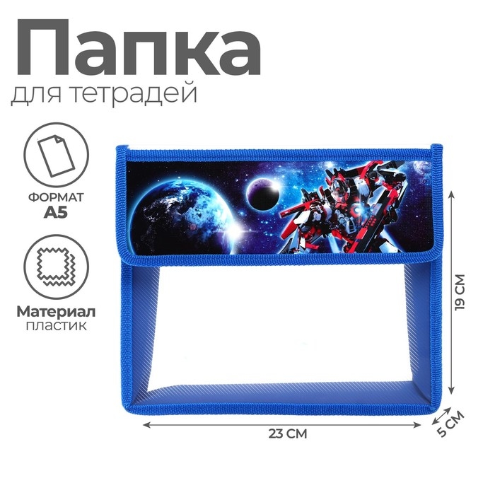 Папка для тетрадей А5 (230 х 190 х 50 мм), с клапаном на липучке, пластик/текстиль, Calligrata, "Трансформер"
