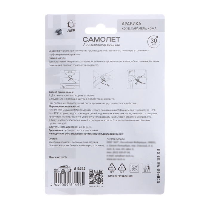 Ароматизатор подвесной Самолет ЯК-3, Арабика