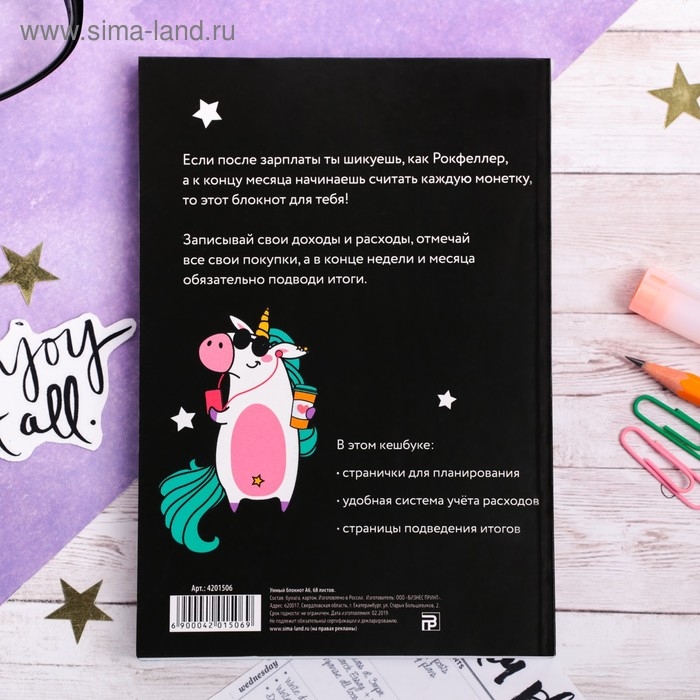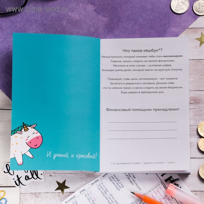 Умный блокнот CashBook А6, 68 листов «Единорог»