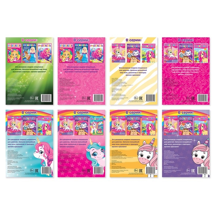 Раскраски для девочек набор «Для маленьких принцесс», 8 шт. по 12 стр.